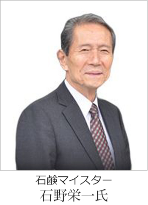 「日本一の石鹸マイスター」と呼ばれている石鹸作り50年、石野栄一氏。 カイコサナギオイルを可能な限り多く配合しつつ、泡立ち・泡切れ・洗浄力・洗いあがり感などを考慮。